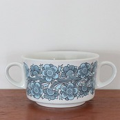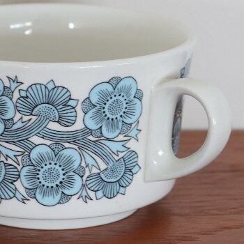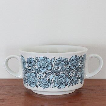 1969-1974年の期間に製作されたアラビアのKaarina。Raija Uosikkinenが装飾デザインを手がけたシリーズとなります。 1970年代のアラビア作品に多い傾向ですが、シリーズ名はフィンランド女性の名前から選ばれたものと思われます。 青い花が可憐で、ウォシッキネンらしいレトロで味わいのあるデザインです。