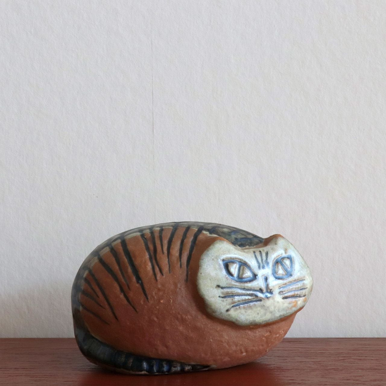 ミッドセンチュリーのグスタフスベリを象徴する作品として現在でもコレクターから高い評価を受けており、製作数は他のシリーズに比べてやや多いものの状態の良い個体は年々見つかりにくくなっています。釉薬の風合いや手仕事の温かさが感じられる、リサ・ラーソン初期作品ならではの味わい深い一品です。