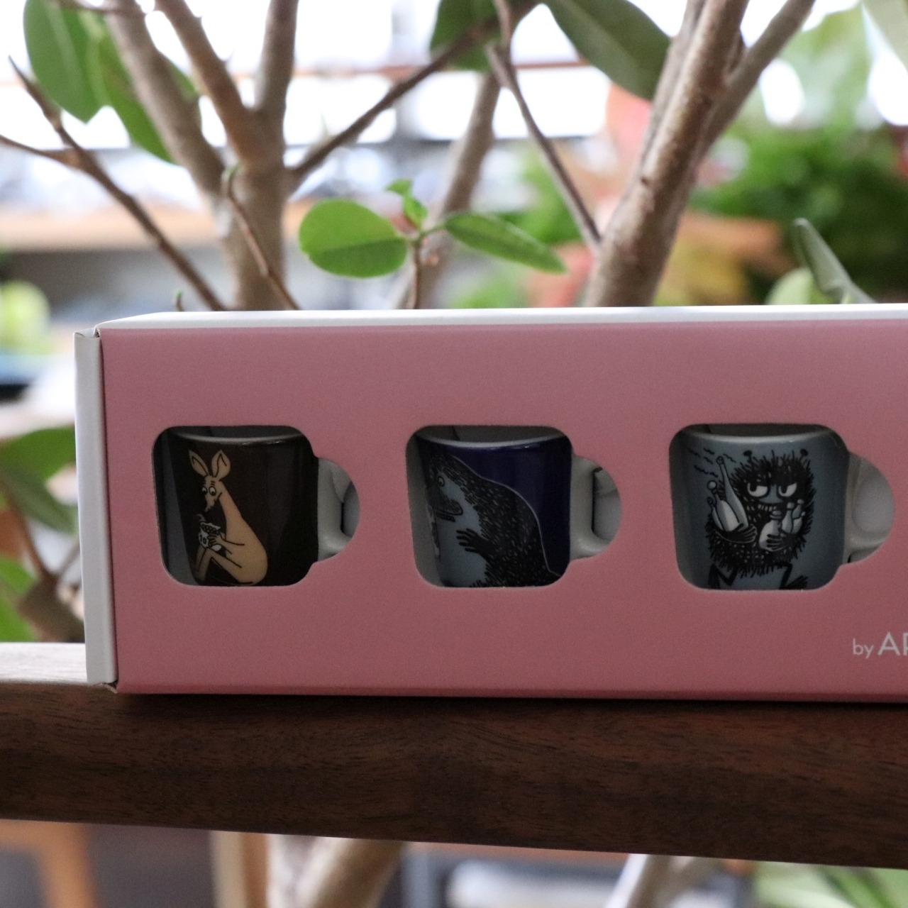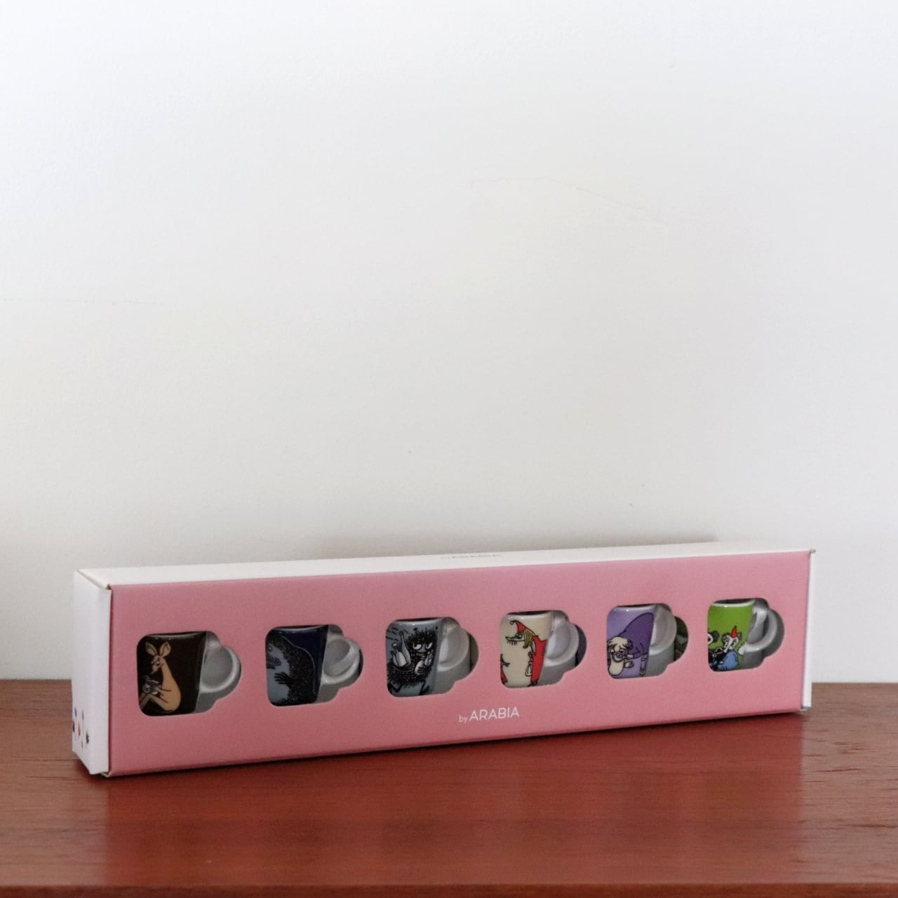 「クラシック2」は2001-2005年に発売された、スティンキー、スニフ、フィリフヨンカ、ヘムレン、モラン、トフスランと ビフスランのデザインです。 6キャラクターが窓付きのボックスにずらりと並んだ華やかなミニマグセットはコレクションと しても、 ギフトとしてもおススメです。