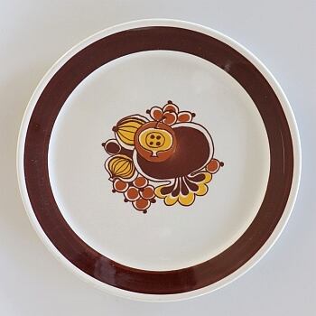 ノルウェーのFiggjoで製作された“August”シリーズ。Gramstad Oliverがデザインを手がけました。 ノルウェーらしい、アースカラーでレトロな雰囲気。バックプリントはFiggjoとなっていますが、もともとはStavangerflintで製作されたもので、同社との合併後も製作が続いたものとなります。 大人しいけれど、華やか。そんなミッドセンチュリーの雰囲気も感じるデザインです。同等のコンディションで複数入荷しています。