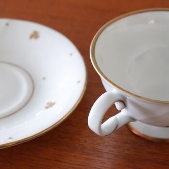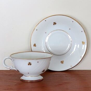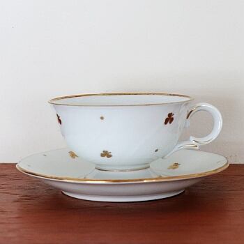 1974-1980の間に製作されたアラビアのApila。Olga Osloによりデザインされたシリーズです。フォルムデザインはREモデル。 カイピアイネンによって同名のシリーズが発表されますが、それと同様に「クローバー=Apila」をモチーフにデザインされています。 白地に金彩と伝統的な技術とクローバーの可愛さのギャップも楽しい一点です。
