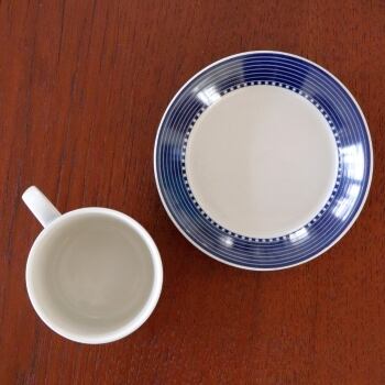 フィンランド、アラビアの頃に製作されたTEEMAのコーヒーカップ&ソーサー。 定番とは異なり、カップとソーサーにネイビーのラインとスクエアの模様が描かれています。同等のコンディションで2点入荷しています。
