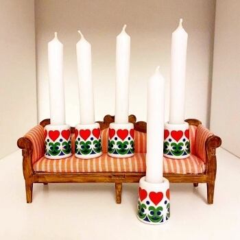 1960年代頃、当時の西ドイツで製作されたキャンドルホルダー。クリスマス時期に飾るように製作されたものの一つで、レトロで可愛い絵が描かれています。 同様のコンディションで数点入荷しています。
