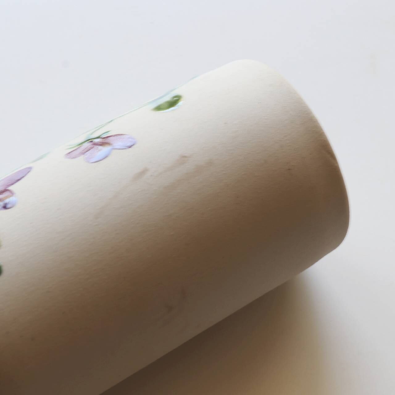 スウェーデンのガブリエルケラミックで製作されたフラワーベース。白地にスミレの花が繊細に描かれています。庭に咲く小さな花や、野の花を何気なく飾るのにも適したサイズです。