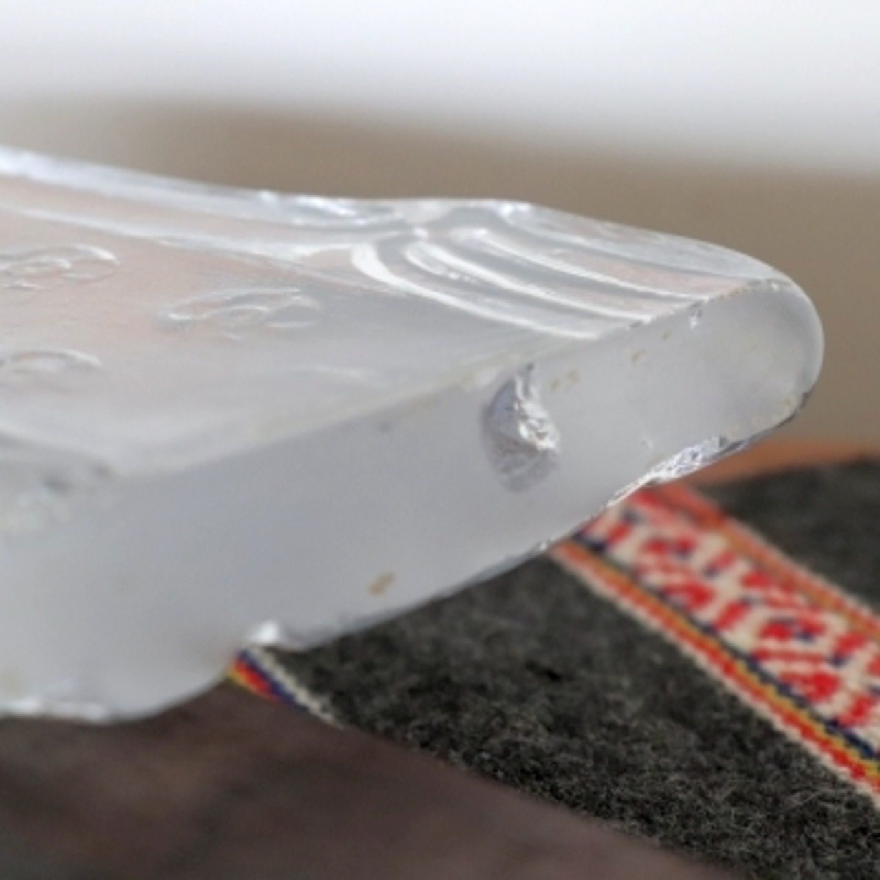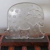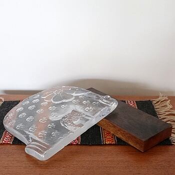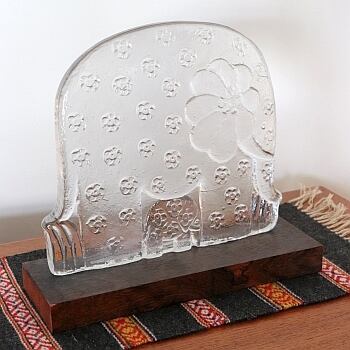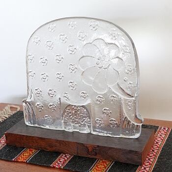 スウェーデンのRoyal Kronaで製作されたクリスタルガラスのオブジェ。リサ・ラーソンが手がけたものとなります。 1976年頃に製作されたもので、制作数が限定的なアイテムとなります。花柄の象の親子を描いた作品。 オリジナルの木製台座が付属しています。底面に小さなチップがありますが、場所柄美観は損ねておらず総じて良いヴィンテージコンディションです。