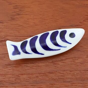 フィンランドのアラビアで製作された魚のナイフレスト(オブジェ)。グンヴァル・ウリン・グラングヴィスト(Gunvor Olin-Gronqvist)が手掛けた作品です。 ヴァレンシアと近い濃い青でハンドペイントで描かれた魚は愛嬌もあり、可愛らしいアイテムです。使用には差支えありませんが、小さな貫入が見られます。