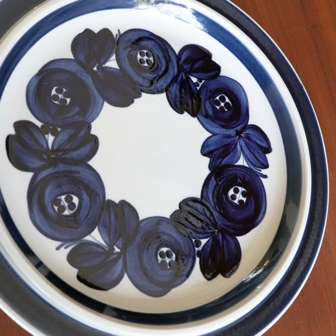 1961年-1976年の間、フィンランドのARABIAで製作されたAnemone。フォルムデザイン、デコレーションともにウッラ・プロコペ(Ulla Procoppe)が手掛けたシリーズです。 太めの筆でざっくりと描かれた花模様とラインがおおらかな印象があるシリーズです。(カップなどは花柄、プレートはラインが中心です) 同じデコレーションではホワイトグレー地に青い花のAnemoneと茶色い花のRosmarinが製作されています。 1976年の製造終了後、80年代に一時的に再生産されています。