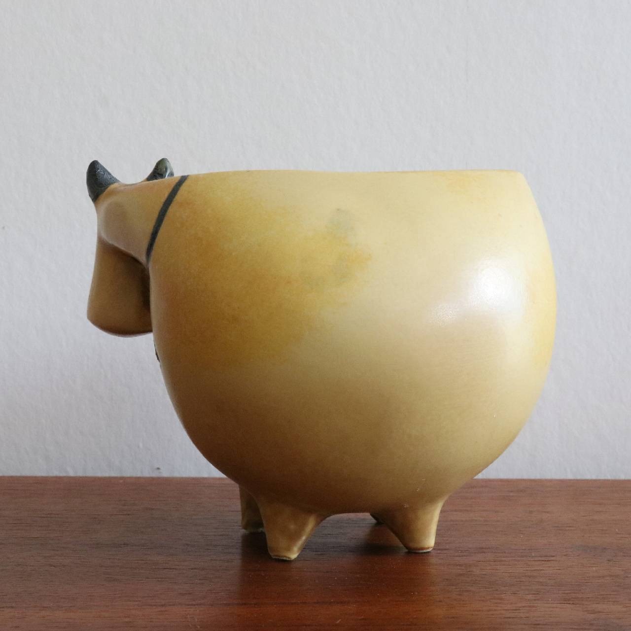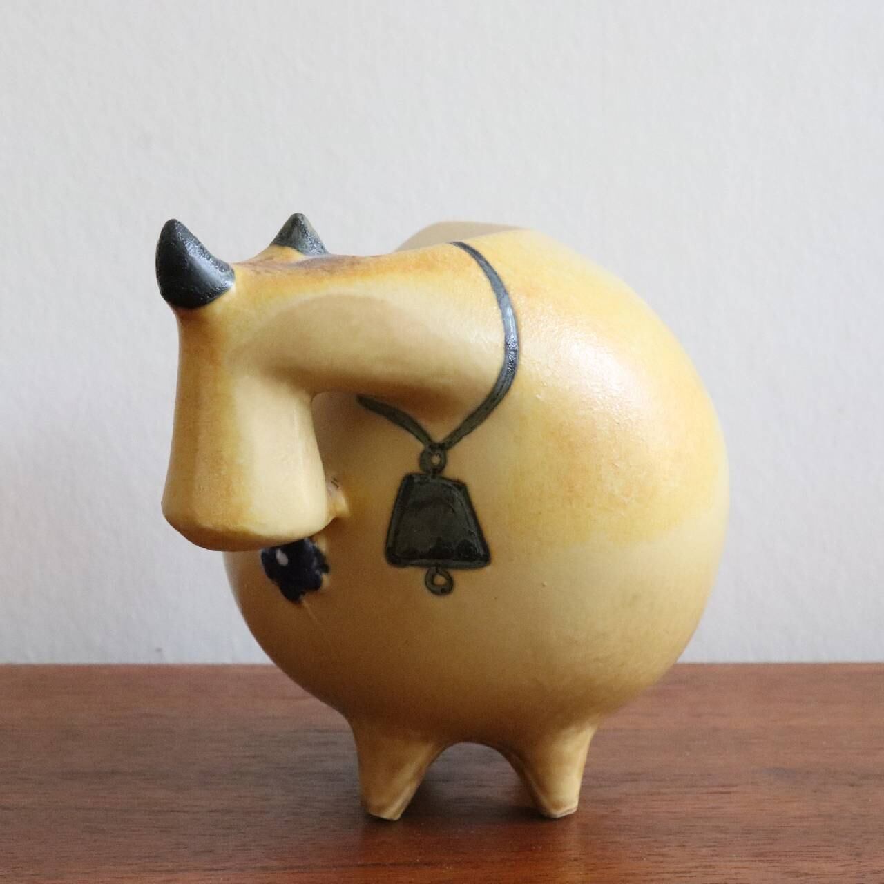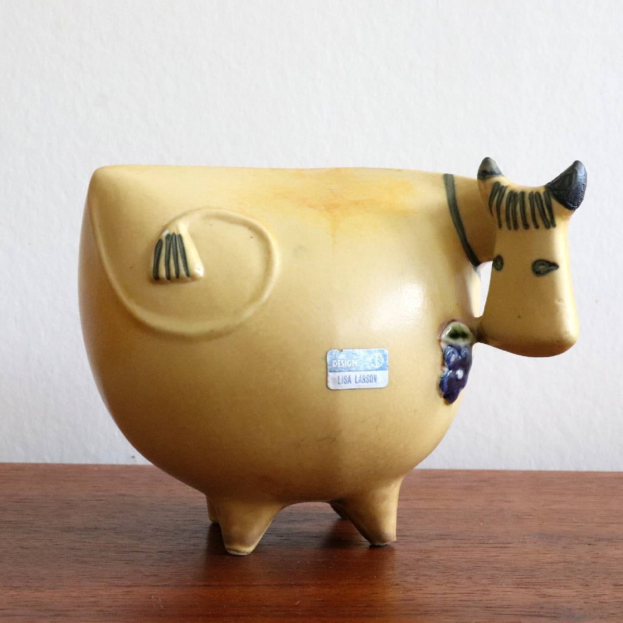 1956年に小さな動物園(Lilla Zoo)シリーズが発表されたのち、1958年に6種類の大きな動物園(Stora Zoo)が発表されます。 この「うし」はそれからさらに2年後、ロバとブルドッグとあわせて追加発表された作品となります。 2020年にはこの「うし」を原型に、Keramik Studionで「スウェーデンのはなのうし」がデザインを変えて発表されています。