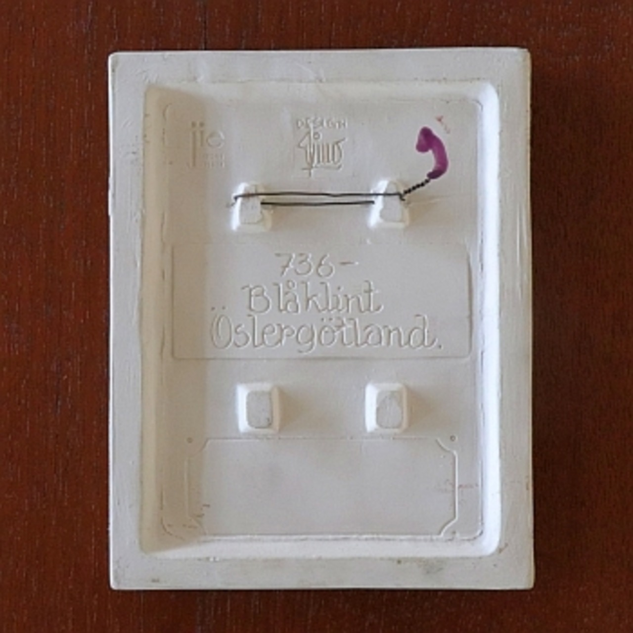 スウェーデンの陶器会社ジィガントフタ(jie gantofta)製の陶板。 牧歌的な田園風景の中に咲く青い野花が描かれた作品です。 壁掛けが出来るよう背面に紐が通せる穴が開いています。