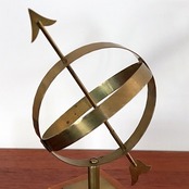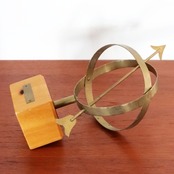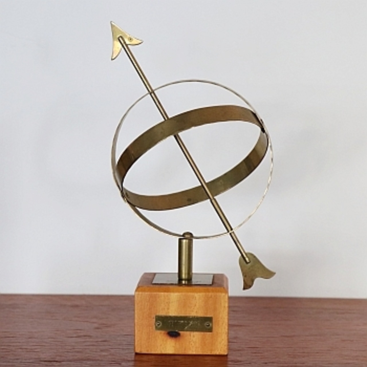真鍮と木で出来た日時計のオブジェ。土台から鏃の先端までは約23㎝あり、お部屋の表情を出すオブジェとして役立ってくれそうです。