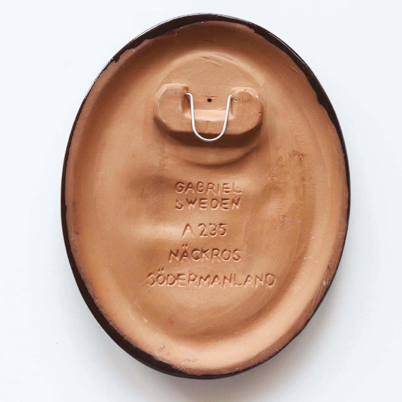 1925年創業のGabriel Keramik(ガブリエル)製の陶板。スウェーデンでは一般の家庭でも部屋や廊下に陶板や写真を飾る慣習があり、 ガブリエルケラミックもその際に愛用された窯元のひとつです。楕円形で目を惹く形状ですので、1点で飾っても複数で飾ってもお部屋のアクセントとして活躍してくれそうです。