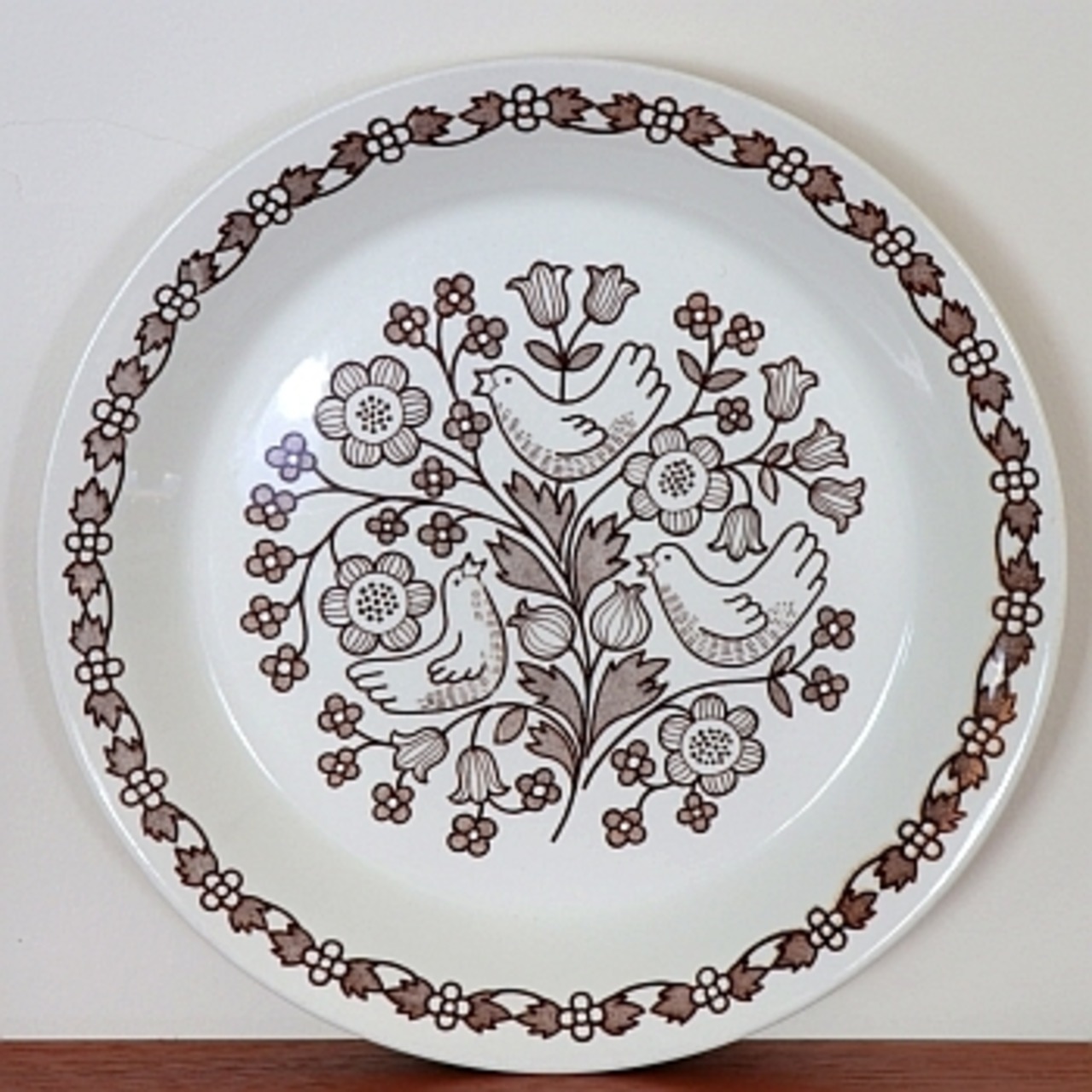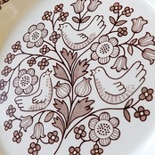 1970年代にフィンランドのArabia社で製作されたシリーズ。エステリ・トムラが手がけた「Finnish Flint」シリーズ 「Unikko」「Elina」「Tuula」などいくつかの柄がデザインされたうちの1つです。 「Finnish Flint」はもともと海外への販売を目的にされたもので、"sirkku"とはフィンランド語で"ホオジロ"を意味する言葉となります。 チョコレートブラウンの野花の中で可愛らしい鳥(ホオジロ)が歌う、レトロで牧歌的なシリーズです。