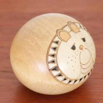 群馬県の卯三郎こけしでひとつずつ丁寧に製作された、リサ・ラーソンのこけし。現在も製作が続くリサの陶器作品「ブルドッグ」がモチーフとなっています。
