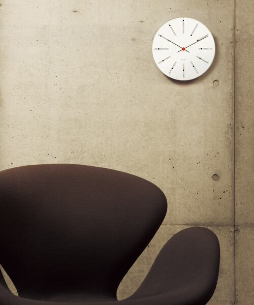 アルネ・ヤコブセンが1971年設計を手掛けた「デンマーク国立銀行」の名作クロック“BANKERS”のウォールクロック。現存する希少なオリジナルクロックを入手し忠実に再現されたバンカーズクロックは、ケースとの一体成型を実現した文字盤が、独特の立体感を演出しています。
