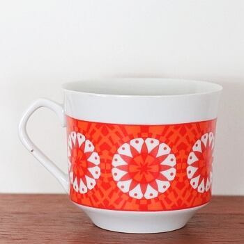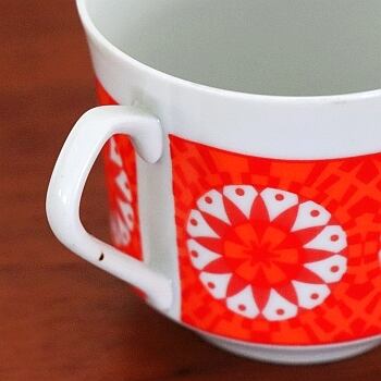 1970年代、チェコ(当時のチェコスロバキア)のEpiagで製作されたカップ。 赤とオレンジで華やかでレトロな花が大きく描かれた作品です。同等のコンディションで2点入荷しています。
