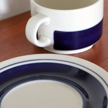 フィンランドのARABIAで1978-1981年の間に製作されたKasino。ゴラン・バック(Goran Back)が手がけたシリーズとなります。 白地に紺色、という潔いデザインで、普段使いもしやすいデコレーションです。