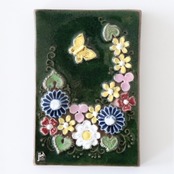 蝶と花の陶板(24㎝) [Jie gantofta / Sweden]