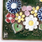 スウェーデンの陶器会社ジィガントフタ(jie gantofta)製の陶板。 花の周りを飛ぶ蝶がバランスよく描かれた作品です。 壁掛けが出来るよう背面に紐が通せる穴が開いています。