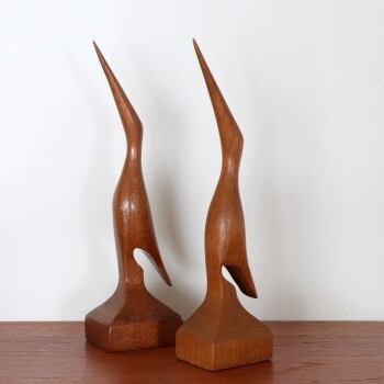 1950年代に製作されたチークの鳥のオブジェ。 ミッドセンチュリーではこうした鳥のオブジェが非常に人気で、雑誌やテレビ、映画など様々なシーンでインテリアとして空間を彩っていました。 凛とした表情が美しく、飾るだけでお部屋の空気を少し印象深くしてくれそうです。