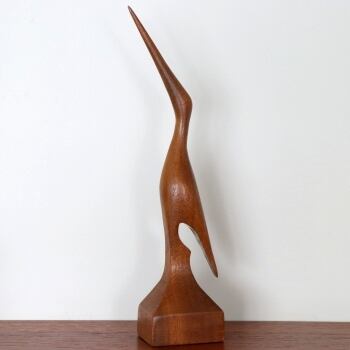 1950年代に製作されたチークの鳥のオブジェ。 ミッドセンチュリーではこうした鳥のオブジェが非常に人気で、雑誌やテレビ、映画など様々なシーンでインテリアとして空間を彩っていました。 凛とした表情が美しく、飾るだけでお部屋の空気を少し印象深くしてくれそうです。