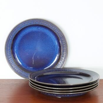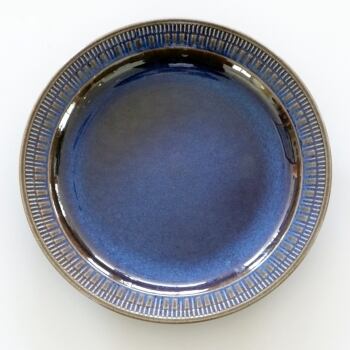 1966年~77年の間、スウェーデンのGefle(ゲフレ)で製作されたKosmosシリーズ。Berit Ternell(ベリット・ターナー)がデザインを手がけたシリーズです。 夜空のような揺らぎのあるブルーの釉薬が魅力的で、一つ一つに小さな表情差が出るのもデザインの特徴です。1967年にオランダ・ユトレヒトの国際展示会で金賞を受賞した作品です。 経年によるカトラリー痕があります。