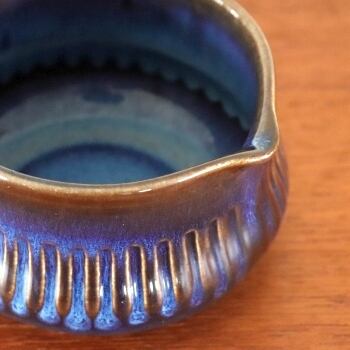 1966年~77年の間、スウェーデンのGefle(ゲフレ)で製作されたKosmosシリーズ。Berit Ternell(ベリット・ターナー)がデザインを手がけたシリーズです。 夜空のような揺らぎのあるブルーの釉薬が魅力的で、一つ一つに小さな表情差が出るのもデザインの特徴です。1967年にオランダ・ユトレヒトの国際展示会で金賞を受賞した作品です。
