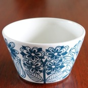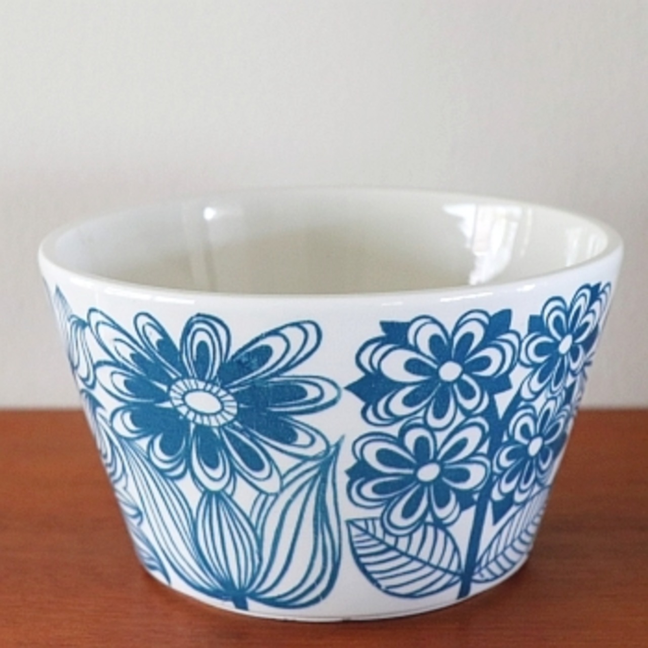 1965年-1969年の間、フィンランドのアラビアで製作されたKeto(ケト)。 フォルムデザインはカーリナ・アホ(Kaarina Aho)、デコレーションデザインはエステリ・トムラ(Esteri Tomra)が手掛けています。 Ketoはフィンランド語で草原を意味します。名前の通り、豊かな草花が深い青で描かれており凛とした美しさを感じるシリーズです。 ※全面に貫入が入っています。(写真2‐4) 価格はそれを考慮したものとなります。食器等の実用品としてはご利用いただけませんので、撮影用、小物入れ等装飾品としてご利用ください。