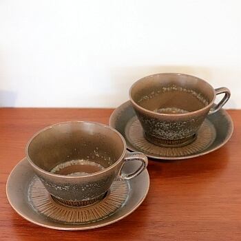 デンマークのケナッブストラップ(Knabstrup)で製作されたカップ&ソーサー。グラデーションのある色合いが美しい『Nøddebo』と言う名のシリーズです。 デザイナーはJohannes Hansenとなり、1950年頃~73年にかけて長く製作されてきたロングセラーのアイテムです。