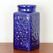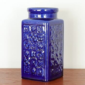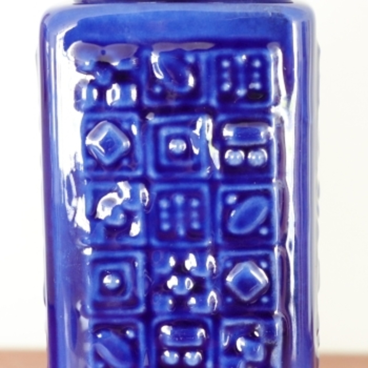 1960年代、当時の西ドイツで製作されたフラワーベース。青一色のベースにマス目に描かれた模様が浮彫で描かれています。