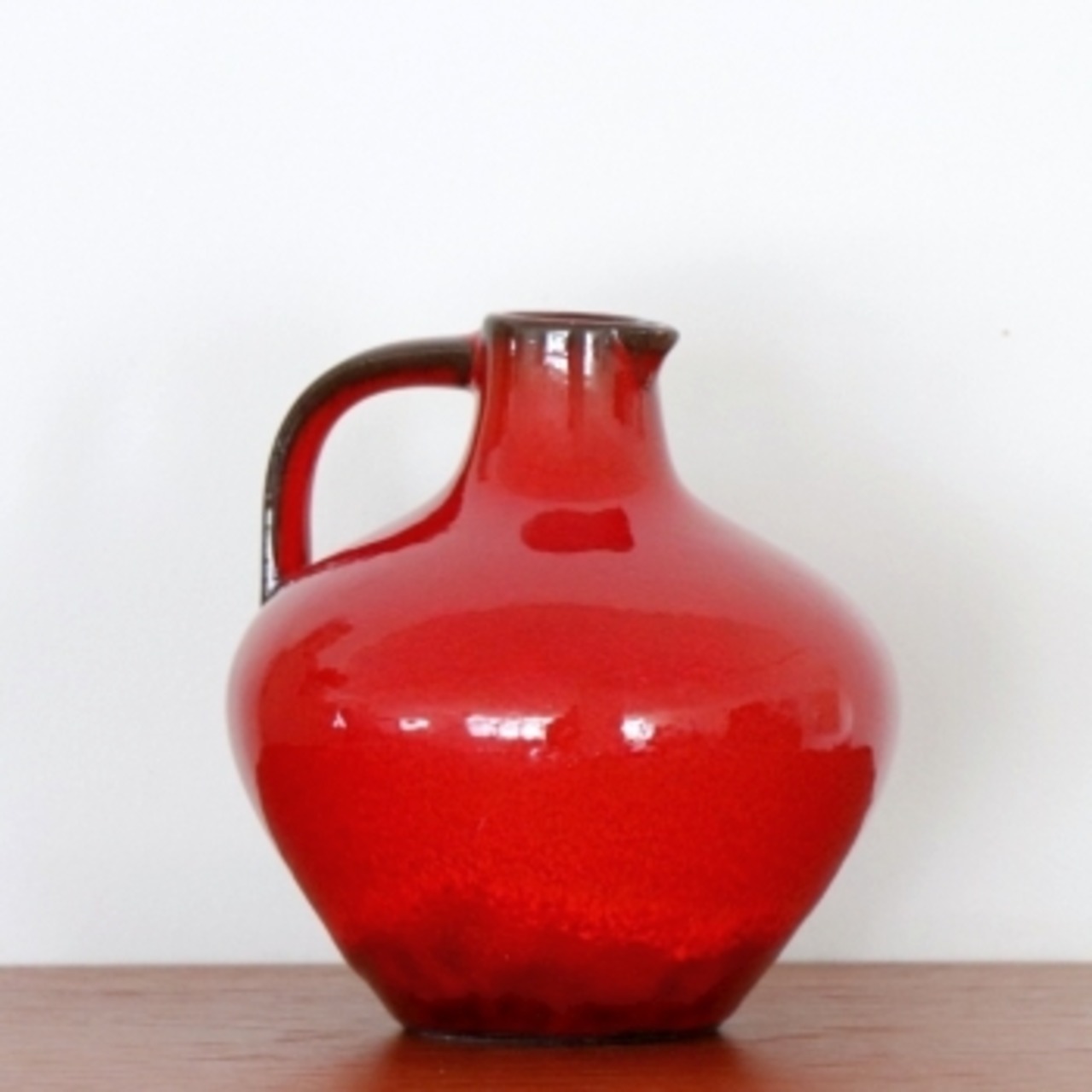 1960年代、当時の西ドイツで製作されたフラワーベース。鮮やかな朱色の釉薬で、水差し様に製作されています。 小さめのサイズですのでお庭の花など、日々の花を挿すのにも良さそうです。