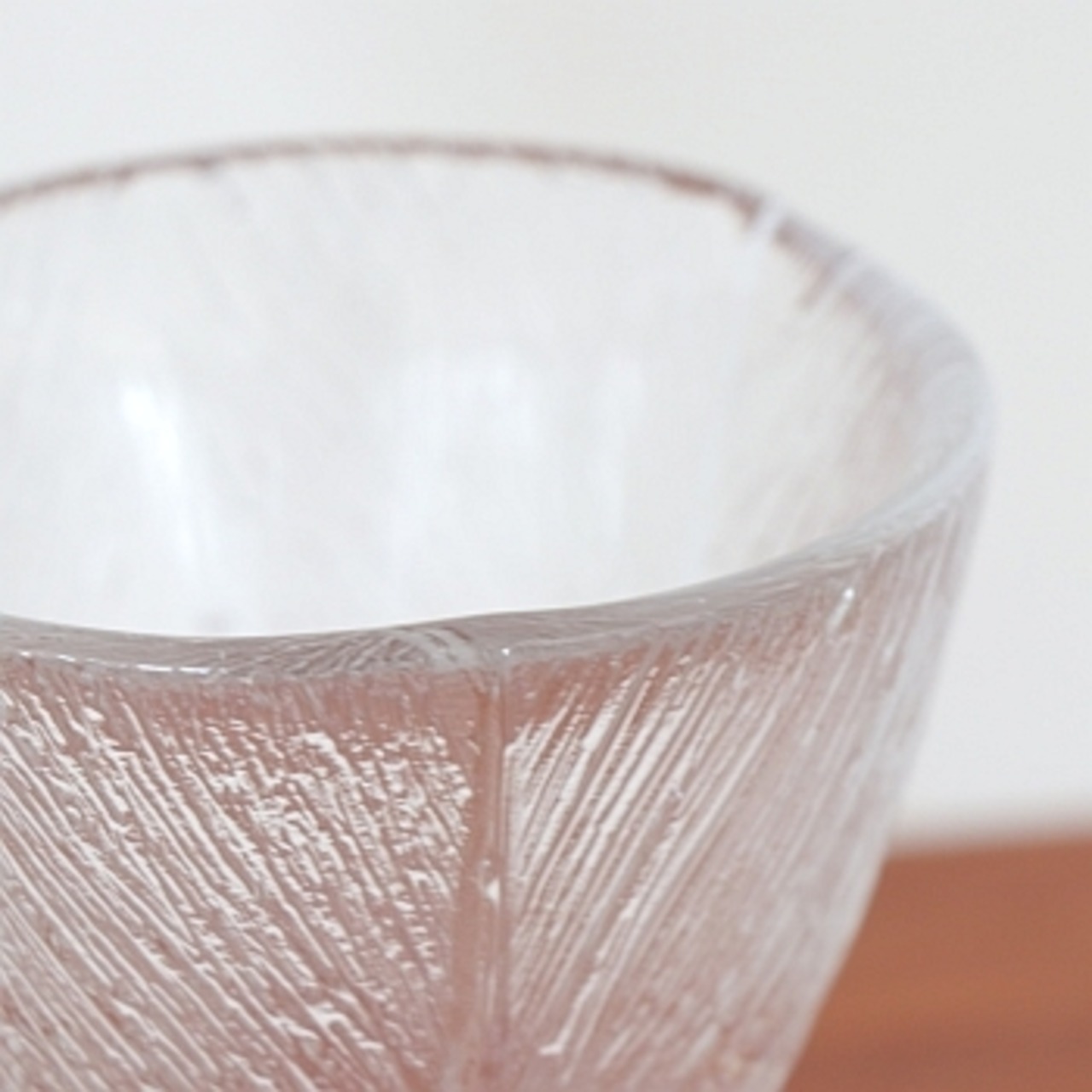 1981-84のごく短い期間、フィンランドのイッタラで製作されたTuuli。ヴァルト・コッコ(Valto Kokko)がデザインを手がけたシリーズです。 上に広がった形状はよく見ると同心円ではなく、有機的に広がったフラクタルなデザインです。シリーズ名のTuuli=風、からその流れを意識したようなフォルムが選ばれたのでしょうか。 花束をざくっと飾りやすい形状で、実用的に華やかに空間を演出してくれそうです。