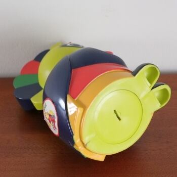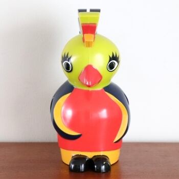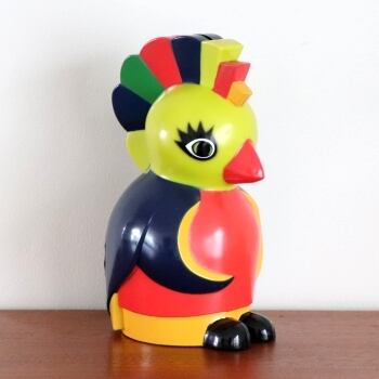 1960-70年代頃、オーストリアのOberBankでアメニティとして製作された貯金箱。 この時代では銀行が子供用のアメニティとして貯金箱を製作し、プレゼントするという事が欧州を中心に広まっていました。 鍵は銀行で預かっており、子供たちはコインが溜まるとそれを銀行に持っていき貯金をする、という方法で各銀行毎に 工夫を凝らしたデザインが製作されたようです。
