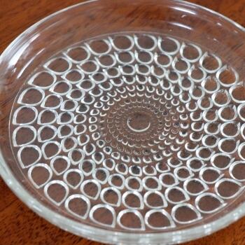 フィンランドのRiihimaen Lasiで製作されたMeljaシリーズ。少し厚手のポテッとしたガラスで表現されたプレート。 残念ながらデザイナー等詳細な情報が確認出来ませんでしたが、普段使いにちょうど良いバランスのデザインです。