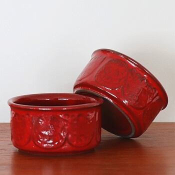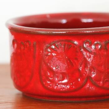 1970年代、西ドイツで製作された小さめのボウル。複数点セットで入荷したうちの1点です。 1970~80年代には北部ヨーロッパを中心にフォンデュが流行していたのですがこちらのボウルも当時はそのような用途として製作されたようです。 セットで揃えても、一つずつでも可愛いシリーズです。