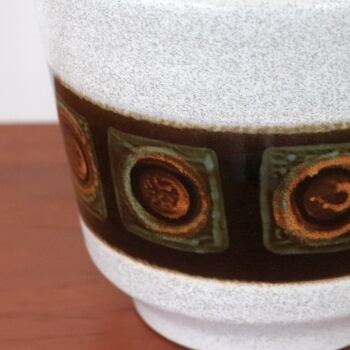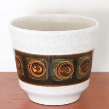 1960年代頃、西ドイツのDümler & Breiden社で製作されたプランターポット。ベージュベースにブラウンと落ち着いた上品な色彩で仕上げられています。 底には穴が開いていませんので、植物を育てる際はプラ鉢(5号程度)などで管理をして頂くと良さそうです。