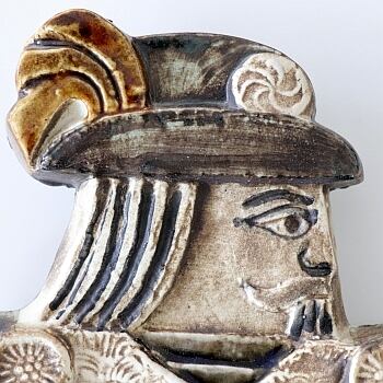 1967-73年の間、グスタフスベリで製作されたDrabant(近衛兵)のうちの1体、近衛兵の陶板です。 このシリーズは王宮に仕える人々がモチーフとなっており4種類が製作されました。サイズも大きく、飾りがいのあるアイテムの一つです。
