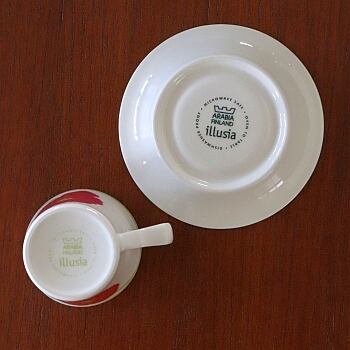 1998年にデザインされ1999-2010年のあいだ、フィンランドのARABIAで製作されたillusia(イッルシア)。 デコレーションはFujiwo Ishimoto(石本 藤雄)、フォルムデザインはHeikki Orvola(ヘイッキ・オルヴォラ)がデザインを手がけています。 ベースとなるカップ&ソーサーを中心に、季節や時期により特別限定色として緑、橙、黄などいくつかの色のマグも製作されています。