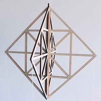 フィンランドのヨウル(joulu)の装飾品、ヒンメリをイメージする木製オーナメント。ヒンメリはもともとは950年ほど前から続く伝統的な飾りで、藁に糸を通し多面体を構成したら、最後にそれらを繋ぎ合わせて吊るす別名「光のモビール」と呼ばれるものとなります。