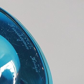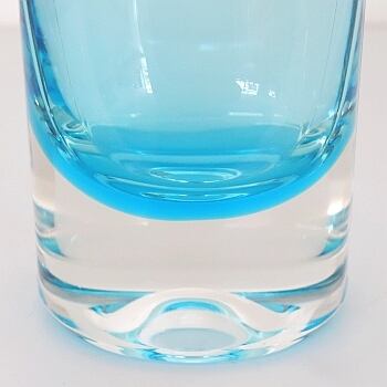 1964-1970年の間、フィンランドのヌータヤルヴィで製作されたガラスベース。デザイナーはカイ・フランクとなります。 KF-295は全てマウスブローで成型され、手磨きによって仕上げられています。18.5㎝と22cmの2サイズ、ライラック、グレー、ブラウン、ターコイズの4色で製作されました。 底にはサインが記されています。