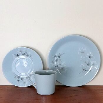 フィンランドのARABIAで製作されたLumikukka。1961-66年の間にグレー、ブルー、ピンクの3色が製作されています(ピンクのみ-1964年)。 Raija Uosikkinenがデザインを手がけたシリーズです。雪の(Lumi)花(kukka)という名前を付けられており、小さな花が可憐に咲く姿を捉えています。 アラビアの中ではスクリーン転写で製作された最初の意欲的な作品となります。