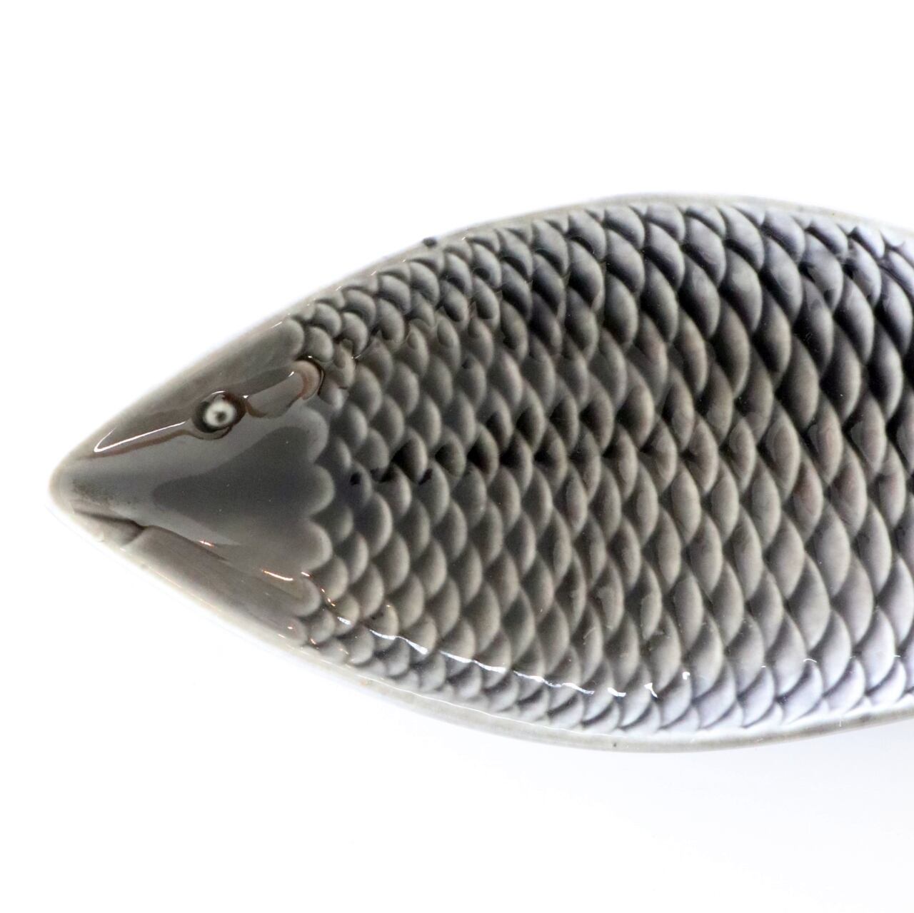 グスタフスベリ(スウェーデン)製のお魚のトレイ。 スティグ・リンドベリの作品で、魚のうろこが一つ一つ描かれたとてもデザイン性の高いお皿です。ブラウンを中心にホワイト、グレー、ライトブルーの4色が製作されています。