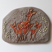 動植物をデフォルメして独特のフォルムに仕上げることを得意としたEster Wallin。この鹿の家族は連作で製作されたもののひとつで、物語性も感じる作品です。 背面には壁掛けが出来るように仕上げられています。