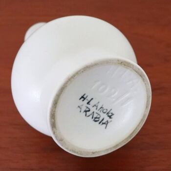 1960年代、フィンランドのARABIAで製作されたフラワーベース。 デザインはHilkka Liisa Aholaが手掛けたものとなります。 アラビアアートデパートメント(ARABIA ART DEPARTMENT)で製作されたもののうちの1点で、製作数は限定的となります。写真では判別できない程度ですが、釉薬部分に淡い貫入があります。