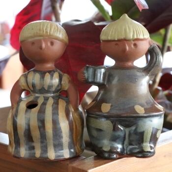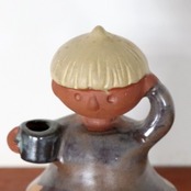 1960年代前後、デンマークで製作されたフラワーガール。小さなドライフラワーを飾るように製作されています。 素朴な像に、手描きで描かれた釉薬がレトロで良い雰囲気をかもしだしています。