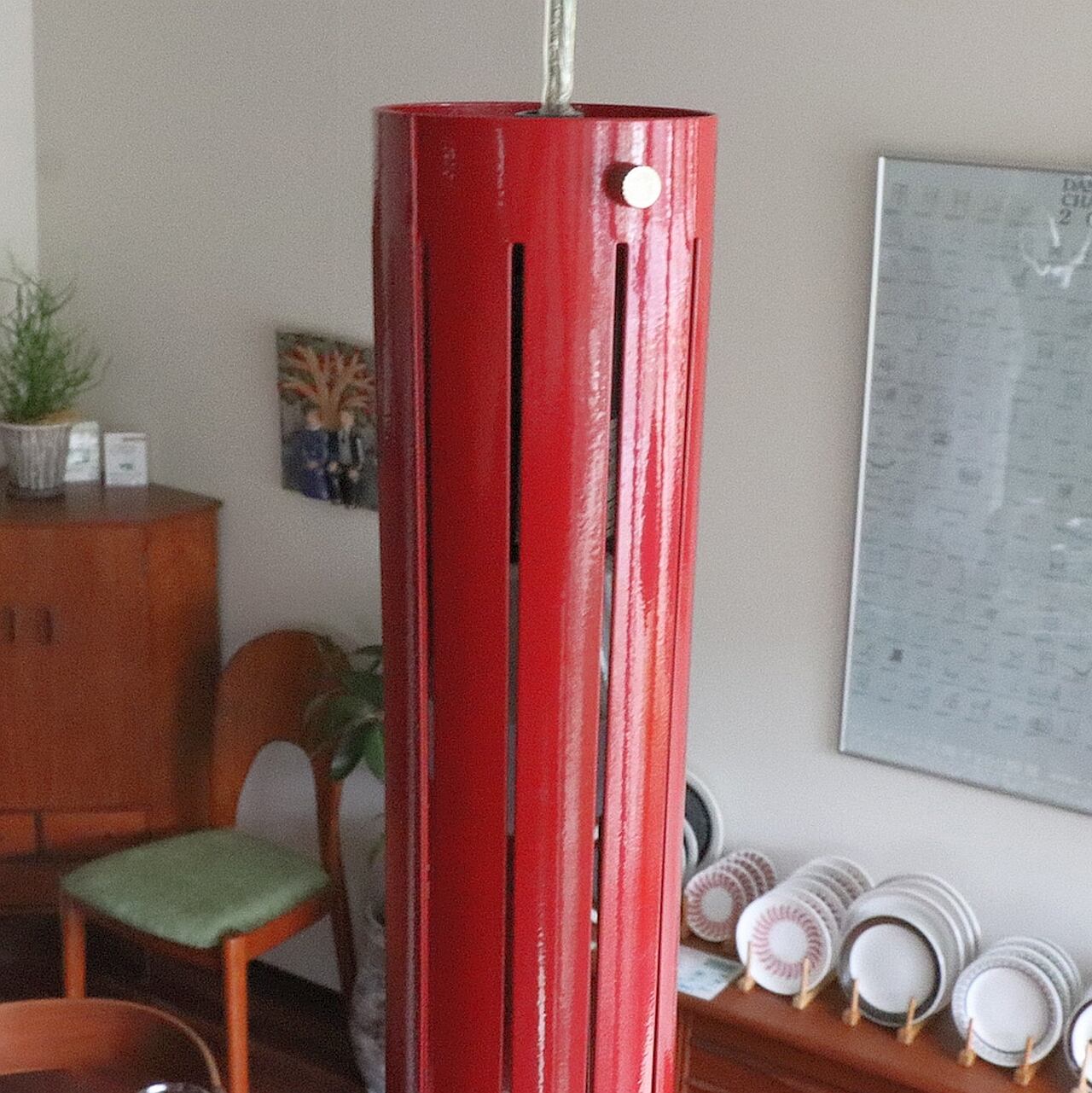 スウェーデンから届いたペンダントライト。本体フレームは赤い金属で出来ており、すっきりとした北欧のミッドセンチュリーらしい表情をしています。