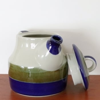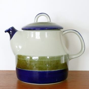 1969-1981年の間、スウェーデンのロールストランドで製作されたエリザベス。マリアンヌ・ウェストマンがデザインを手がけたシリーズです。 濃紺とモスグリーンの2色のシンプルな構成ですが、間に下地のクリーム色が、そして釉薬自体も掠れたラインのためとても表情豊かに見えるグッドデザインです。