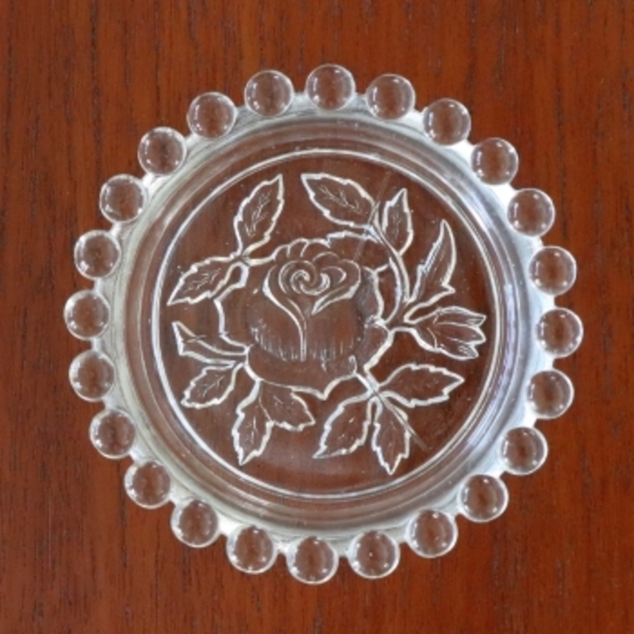 スウェーデンから届いた、薔薇の小皿。小さなサイズですが浮き彫りになった薔薇模様が目を惹きます。 製造元の確認が出来ませんでしたが、近いデザインがフィンランドのヌータヤルヴィで製作されており、その影響下にあった場所で製作された可能性があります。 内部に製造上の小さな気泡があります。同等のコンディションで複数入荷しています。
