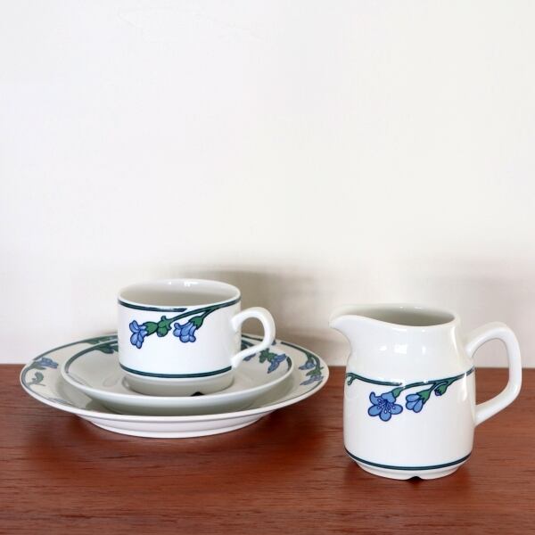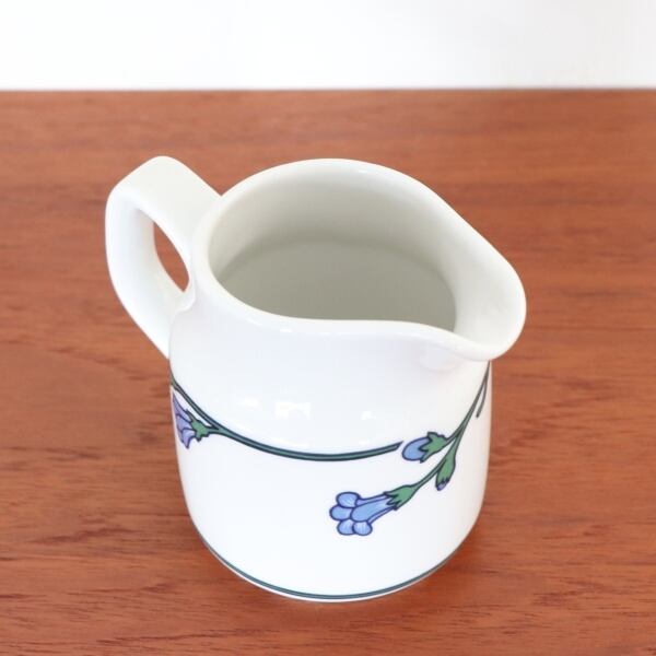 1978-84年の間、スウェーデンのRorstrandで製作されたIngrid(イングリッド)。Jacqueline Lynd(ジャクリーン・リンド)がデザインを手がけたシリーズです。 可憐な小さな青い花が描かれたIngrid。カップはスタッキング(重ね)がしやすいようなフォルムとなっており、セットで揃えた際も収納がしやすいデザインです。 製造数が非常に限定的だったためか、クリーマーはごく珍しいアイテムの一つと思われます。