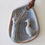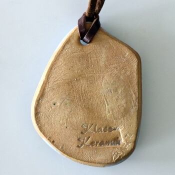 1959年に開窯したKlase Keramik Hoganasの陶製のペンダント。当初はテーブルウェアを中心とした制作をしていましたが、 1980年代になりオブジェや装身具といった作品を制作するようになります。このアイテムもそうした時期のもので、1980年代後半頃に製作されたものと思われます。 牧歌的な雰囲気で、ナチュラルな表情をした作品です。