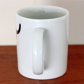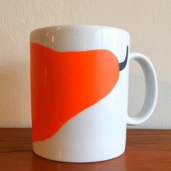 2006年、フィンランドのマリメッコで製作されたPaaryna(洋ナシ)のマグカップ。Maija Isola & Kristina Isola / マイヤ・イソラ&クリスティーナ・イソラが1969年にテキスタイル用にデザインしたものが使用されています。 現行のマグと違い縦に長いデザインで、柄も廃盤となったため市場にはあまり出回っていないアイテムの一つです。